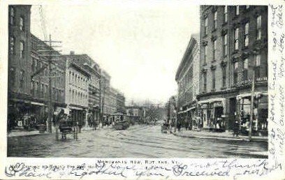 Merchants Row - Rutland, Vermont VT Postcard Postal Date: 1906 Grade: 2 Size: Regular Size Postcard - approximately 3 1/2 inch x 5 1/2 inch (9 CM x 14 CM) Grading Scale: Grade 1 = Perfect corners Grade 2 = Ve ... Read More