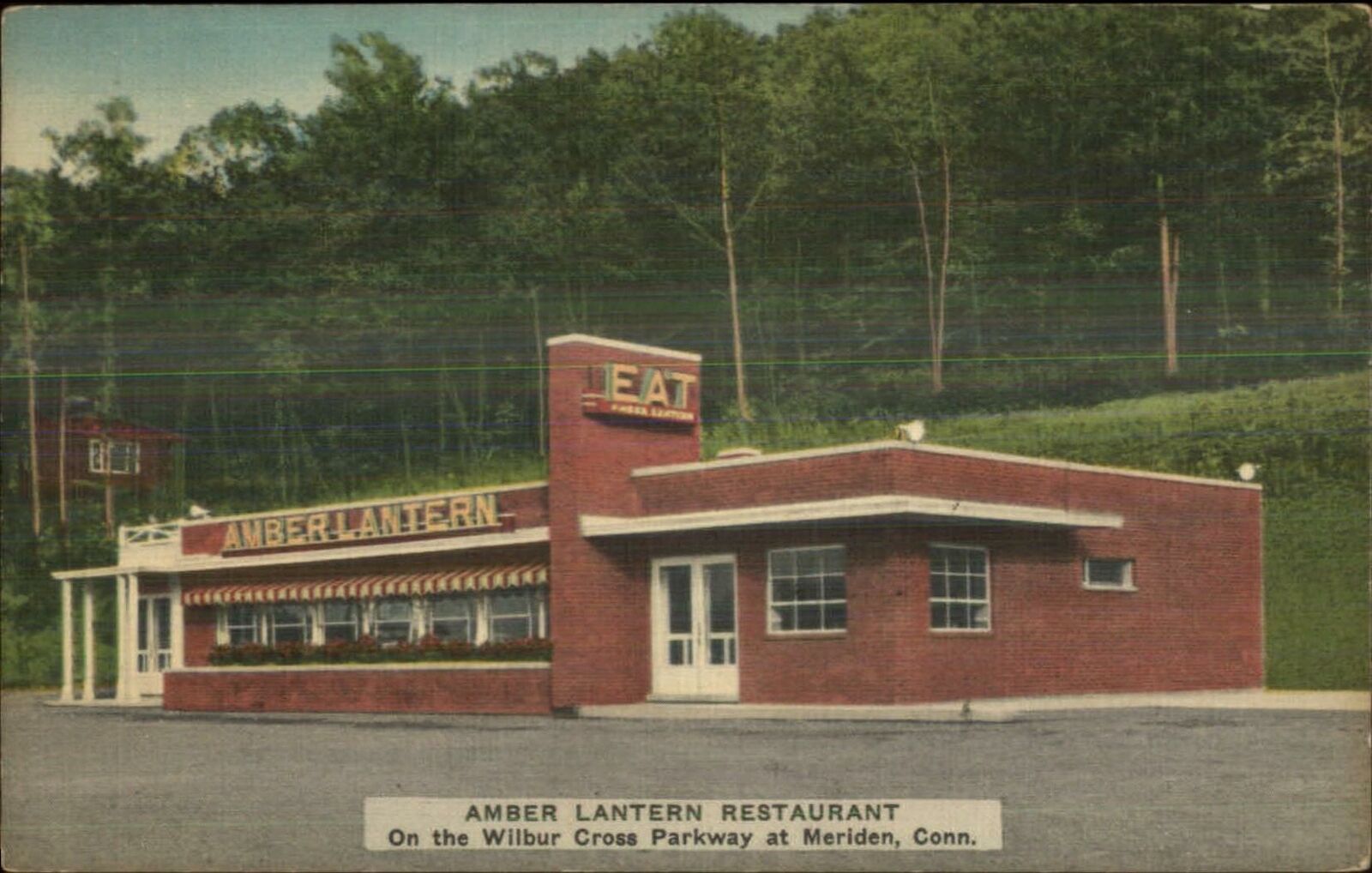 Meriden CT Amber Lantern Restaurant Roadisde Linen Postcard