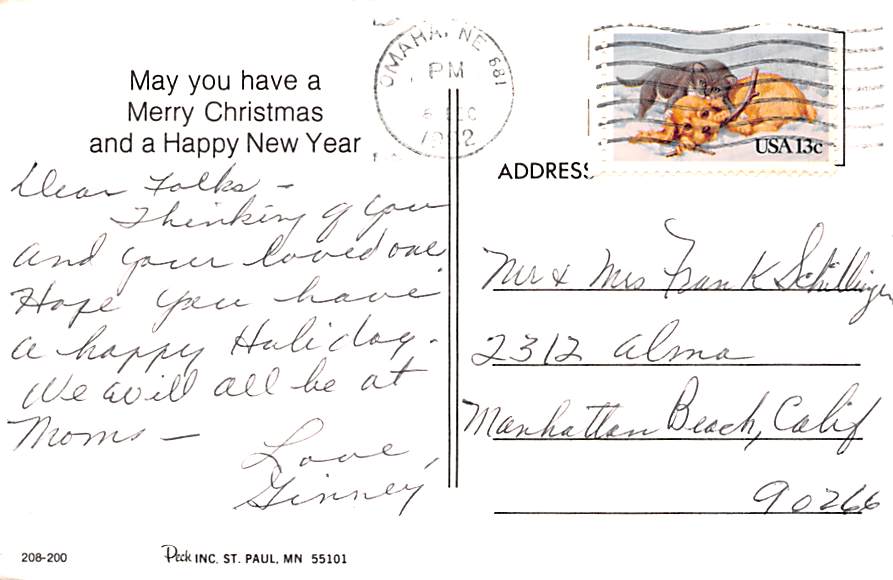 Merry Christmas - Grade: 5 Category: Continental Size Postcard, Approx 4 in x 6 in (10 cm x 15.25 cm) Product Size: Continental size: 4X6 inches (10.5 cm x 15 cm) Grading Scale: Grade 1 = Perfect corners Grade ... Read More