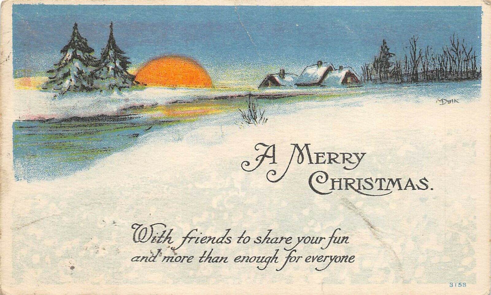 MERRY CHRISTMAS 1920 Postcard Sunrise Snow Pine Trees