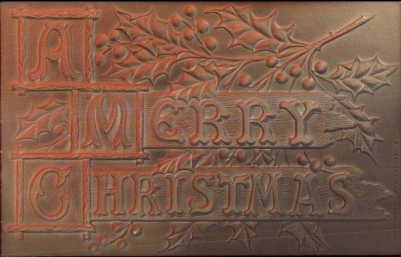 Merry Christmas - Ambossed Airbrushed Greeting c1910 Postcard