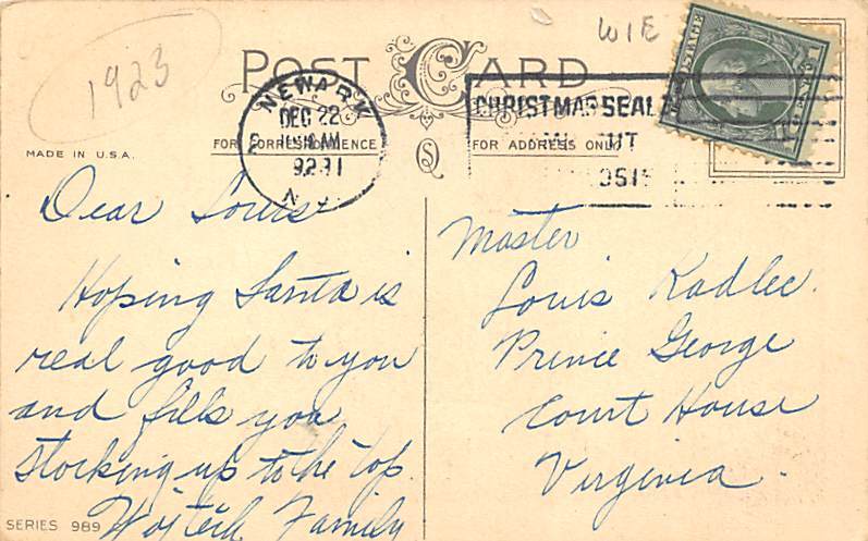 Merry Christmas Christmas Postcard Postage Date Used,