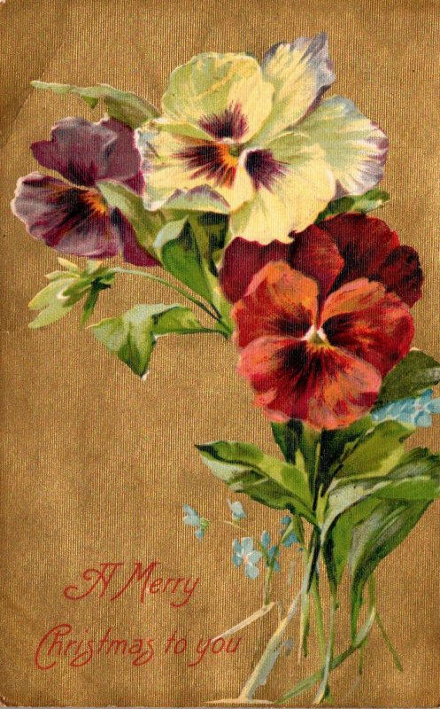 Merry Christmas With Flowers Pansies
