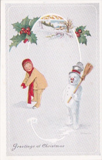 Merry Christmas With Snowman and Children