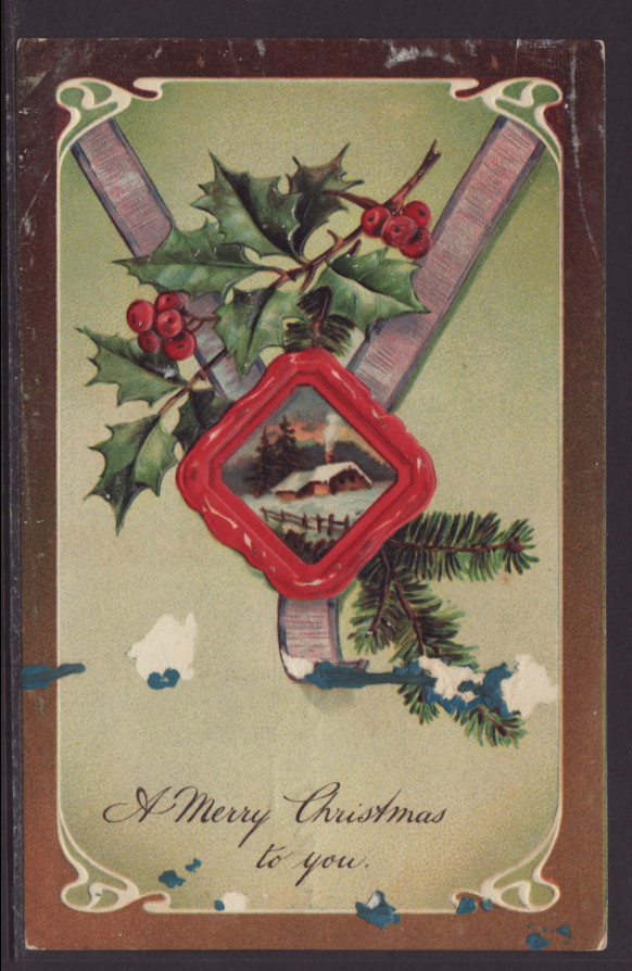 Merry Christmas,Holly,Scene Postcard Used Litho divided back. EX Grading Terms MINT - Perfect in every way, regardless of age. Rarely seen, may not exist. NM - Near Mint, you have to look closely to see t ... Read More