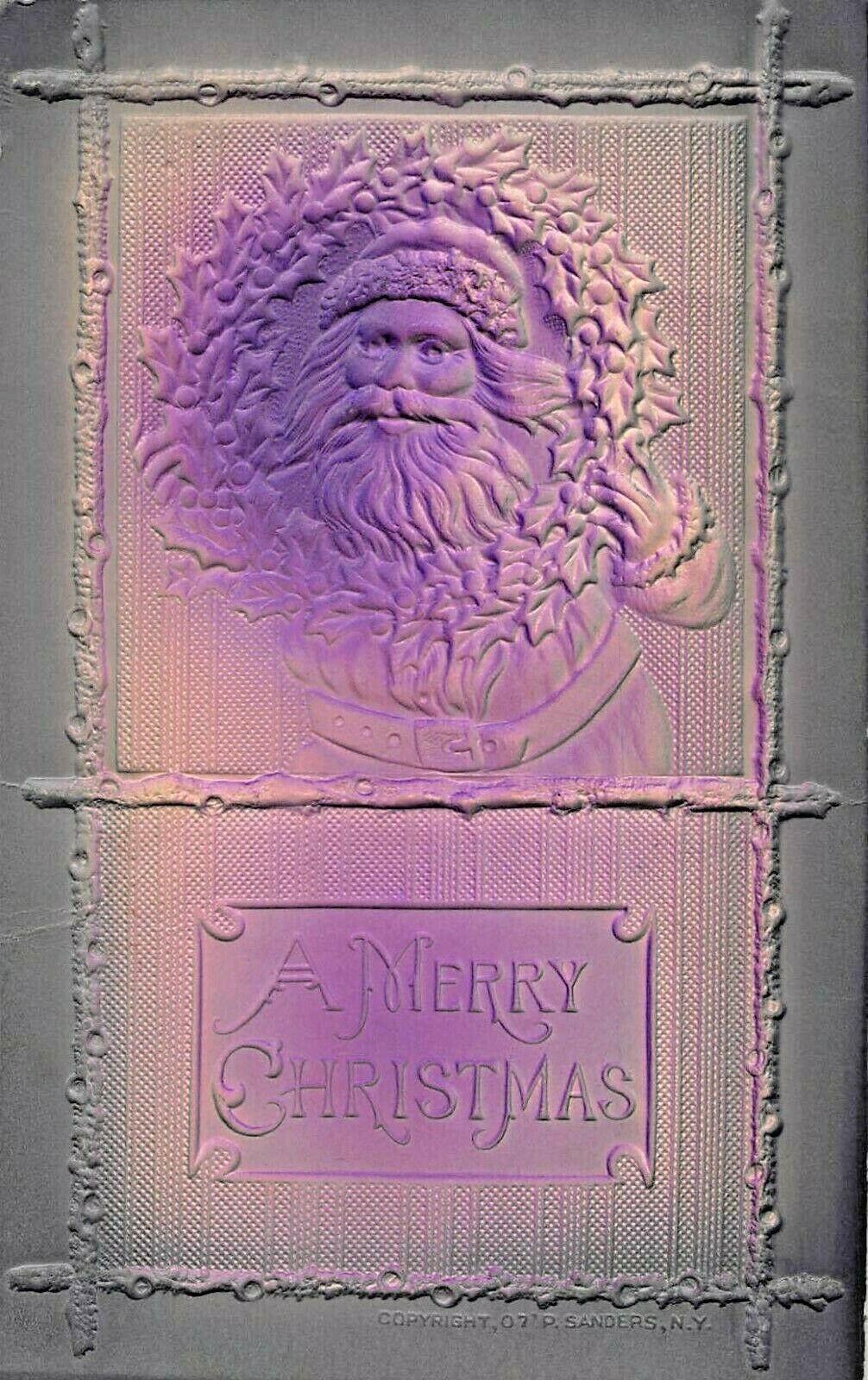 MERRY CHRISTMAS~SANTA CLAUS~AIR BRUSHED EMBOSSED POSTCARD