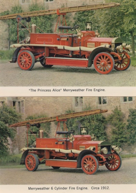 Merryweather & Cylinder Harrow Fire Engine 1912 2x Postcard s
