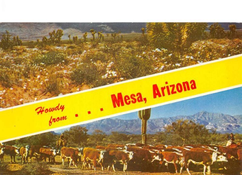 Mesa Arizona Greetings Ranch Scene Cows Cattle Postcard AA87557