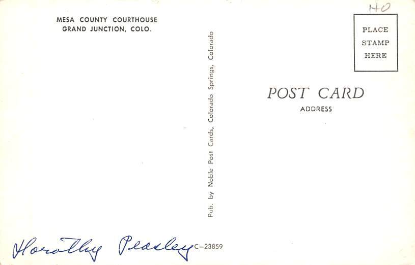 Mesa County Courthouse Grand Junction, Colorado USA Postcard - Grade: 1 Size: R - Regular Size Postcard - approximately 3 1/2 inch x 5 1/2 inch (9 CM x 14 CM) Grading Scale: Grade 1 = Perfect corners Grade 2 = ... Read More