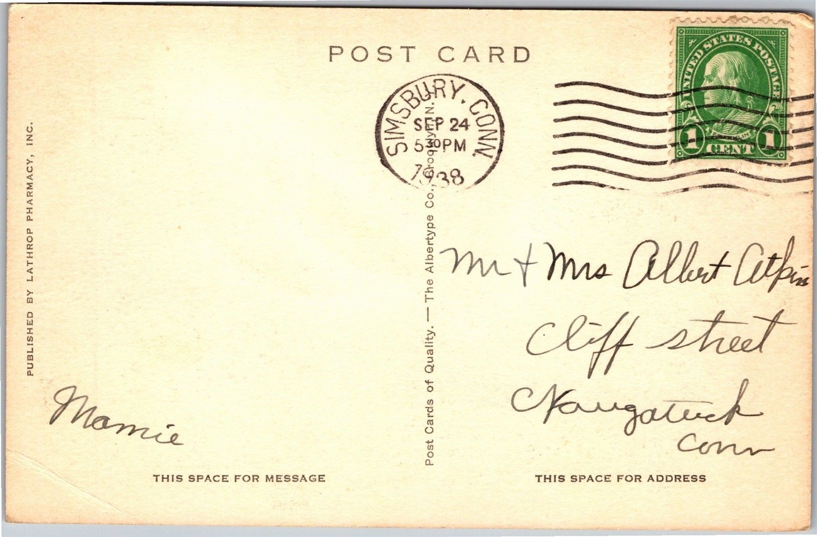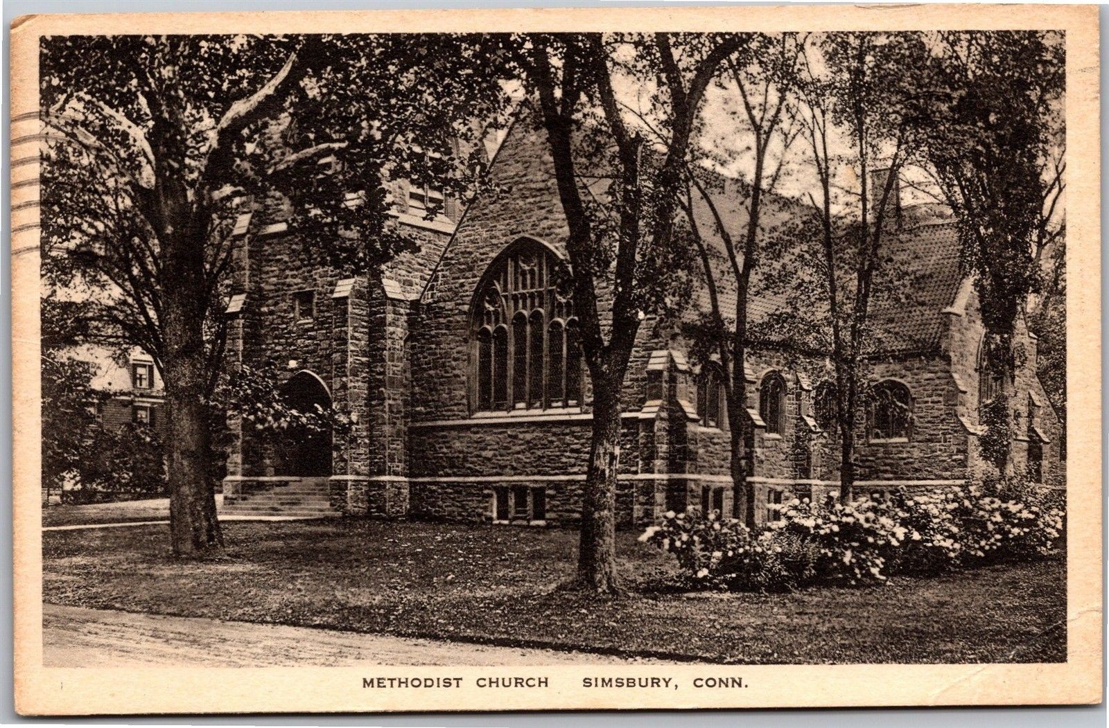 Methodist Church, Simsbury CT c1938 Vintage Postcard L14