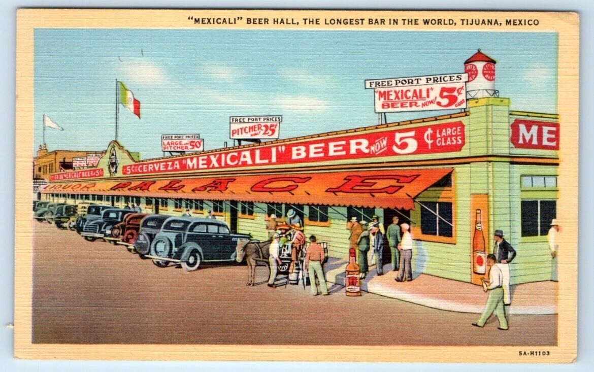 Mexicali Beer Hall TIJUANA Mexico Linen Postcard
