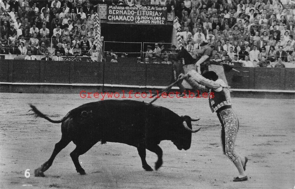Early Real Photo Postcard Mexico, Corrida De Toros, Bull Fighter Postmark: 1958 Image: Sharp and clear Corners: Light wear Faults/Other: