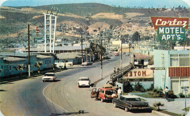 Mexico Ensenada 1950s Automobiles roadside Postcard 22-10741
