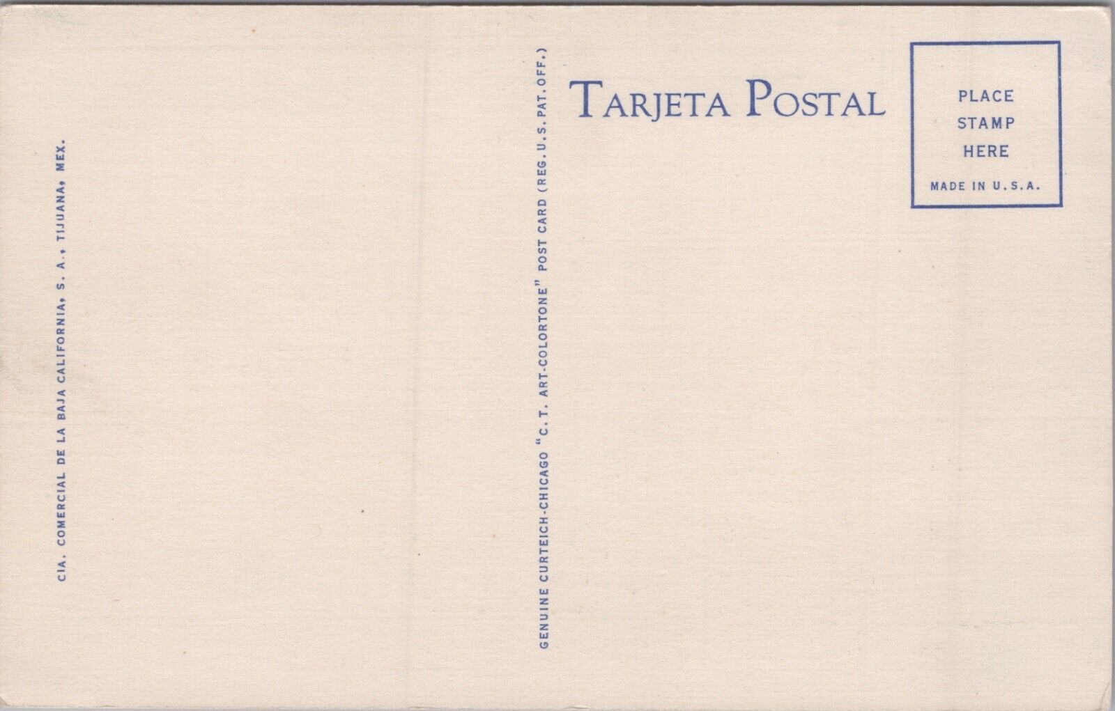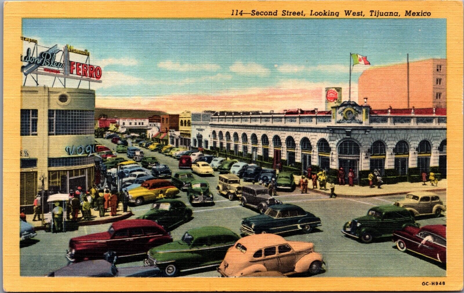 Mexico Second Street Looking West Tijuana Mexico Linen Postcard C290