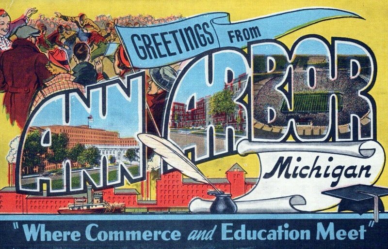 MI, Ann Arbor, Midhigan Linen Large Letter Postcard, Kropp