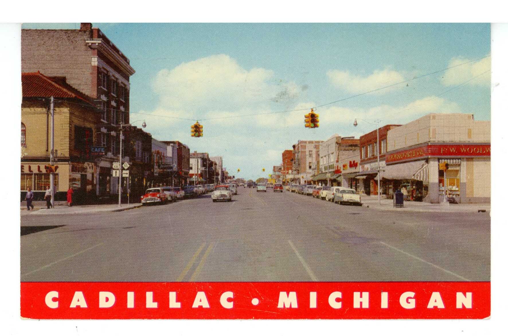MI - Cadillac. Downtown Street Scene ca 1957