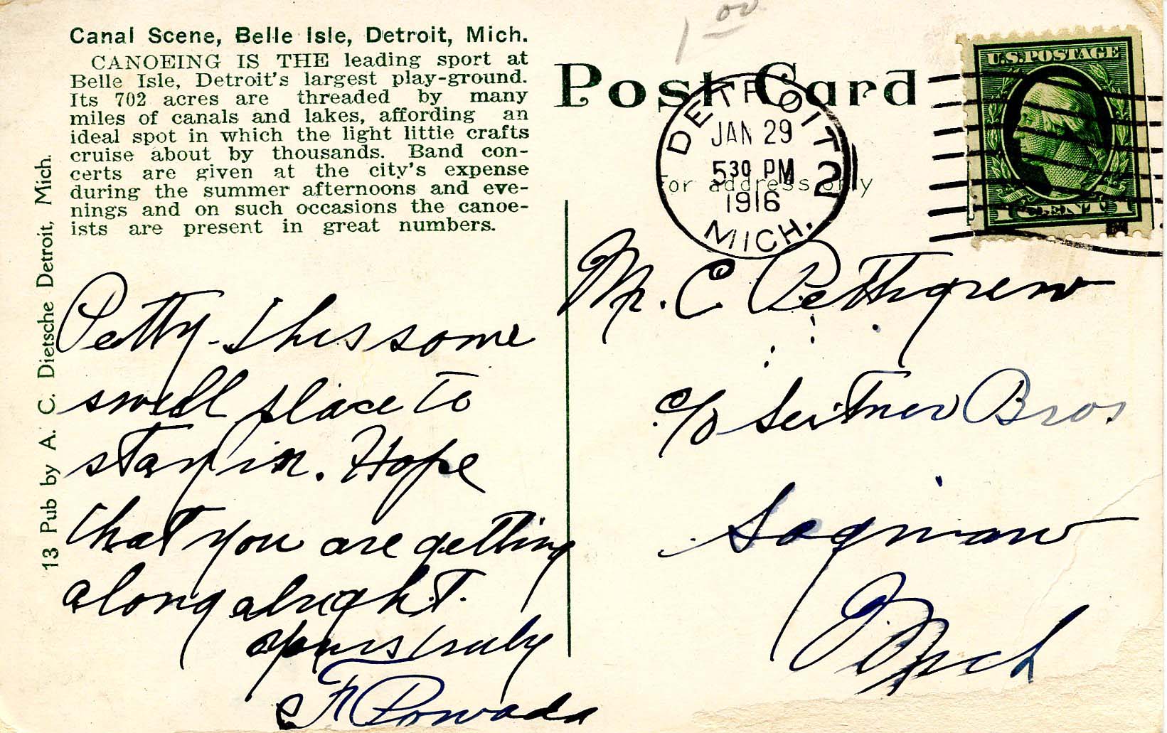MI - Detroit. Belle Isle, Canal Scene