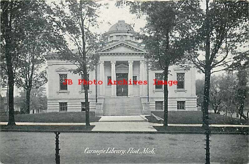 MI, Flint, Michigan, Carnegie Library, Entrance Scene Product Photo Click Image for Larger Preview Product Information This is a nice vintage early printed postcard showing a scene of the Carnegie Library in Flint, ... Read More