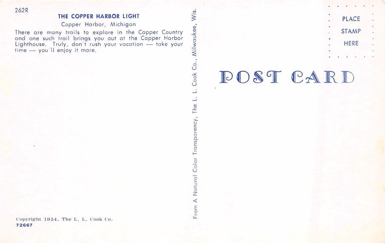 Mi, michigan copper harbor light house lighthouse 1954 chrome postcard