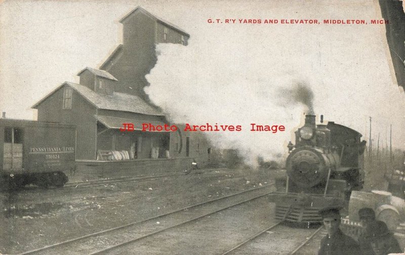 MI, Middleton, Michigan, Grand Trunk Railroad Train Yards & Elevator Product Photo Click Image for Larger Preview Product Information This is a nice vintage early printed postcard showing a scene of the Grand Trunk ... Read More