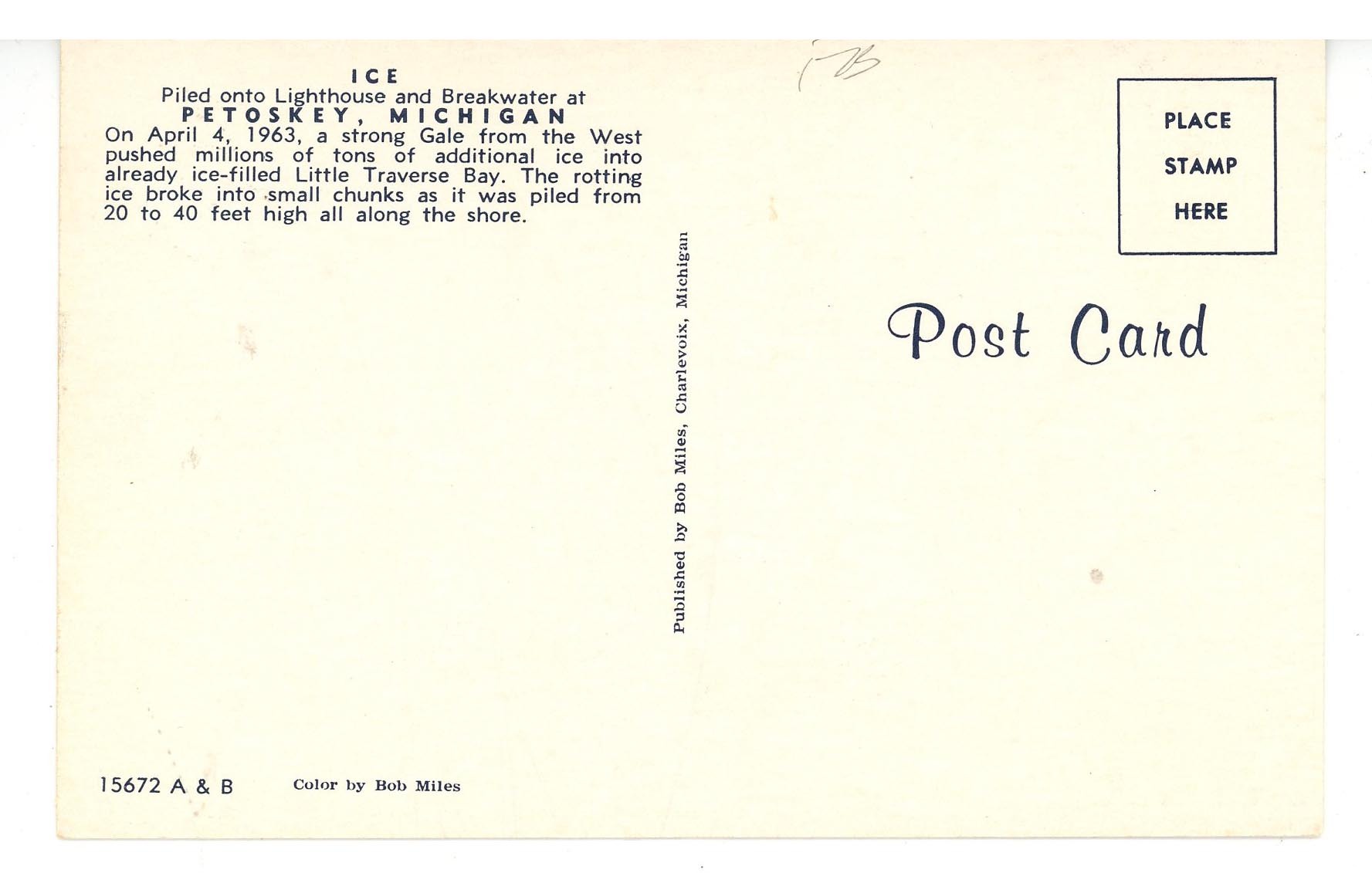 MI - Petoskey. Lighthouse & Breakwater, April 4, 1963.Lake Ice Piled High