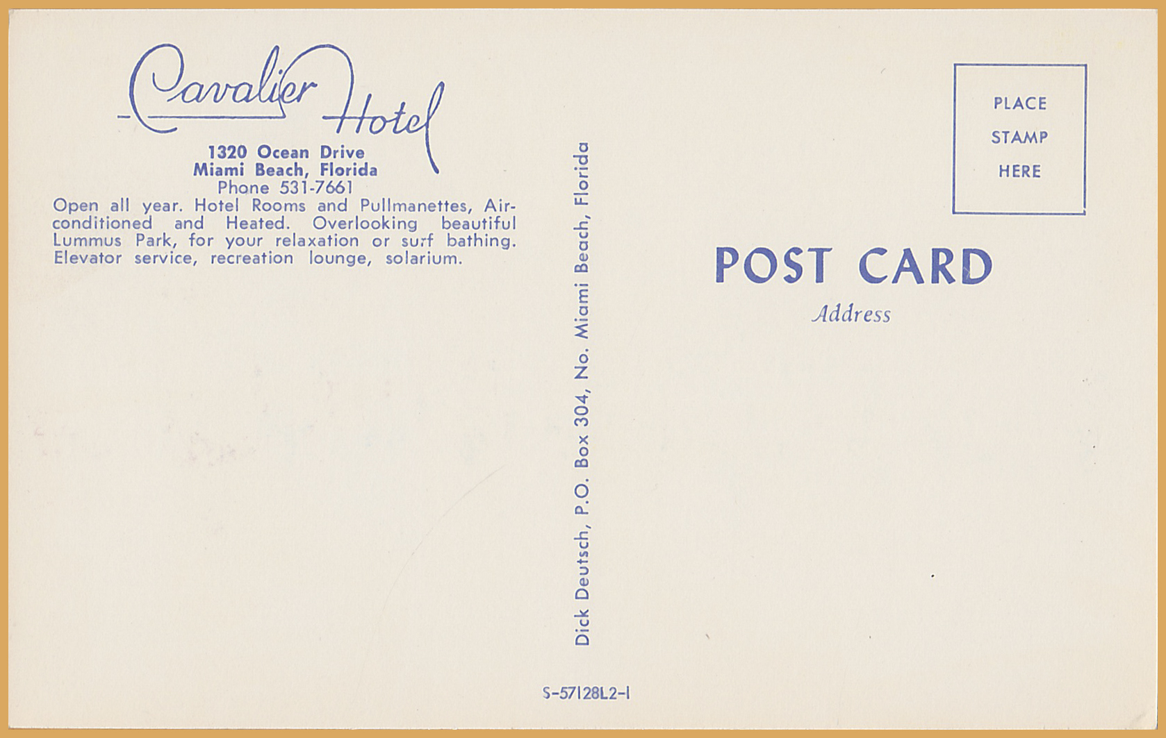 Miami Beach, Fla., Cavalier Hotel, 1320 Ocean Drive -