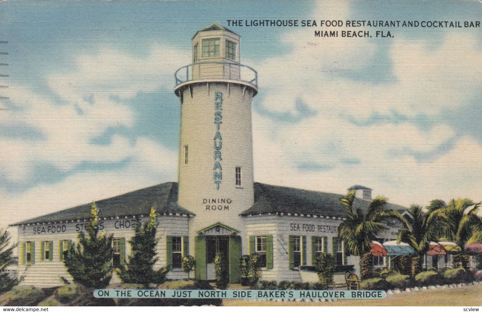 MIAMI BEACH , Florida , 1930-40s ; Lighthouse Seafood Restaurant :: Postcard, 3.5" by 5.5", Linen