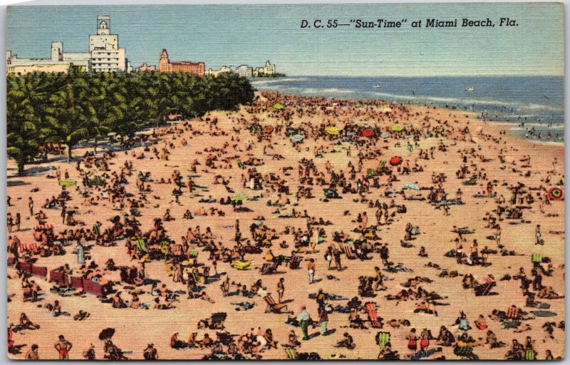 Miami Beach Florida FL, Sun-Time, Crowd, Beach, Sunbathing, Vintage Postcard
