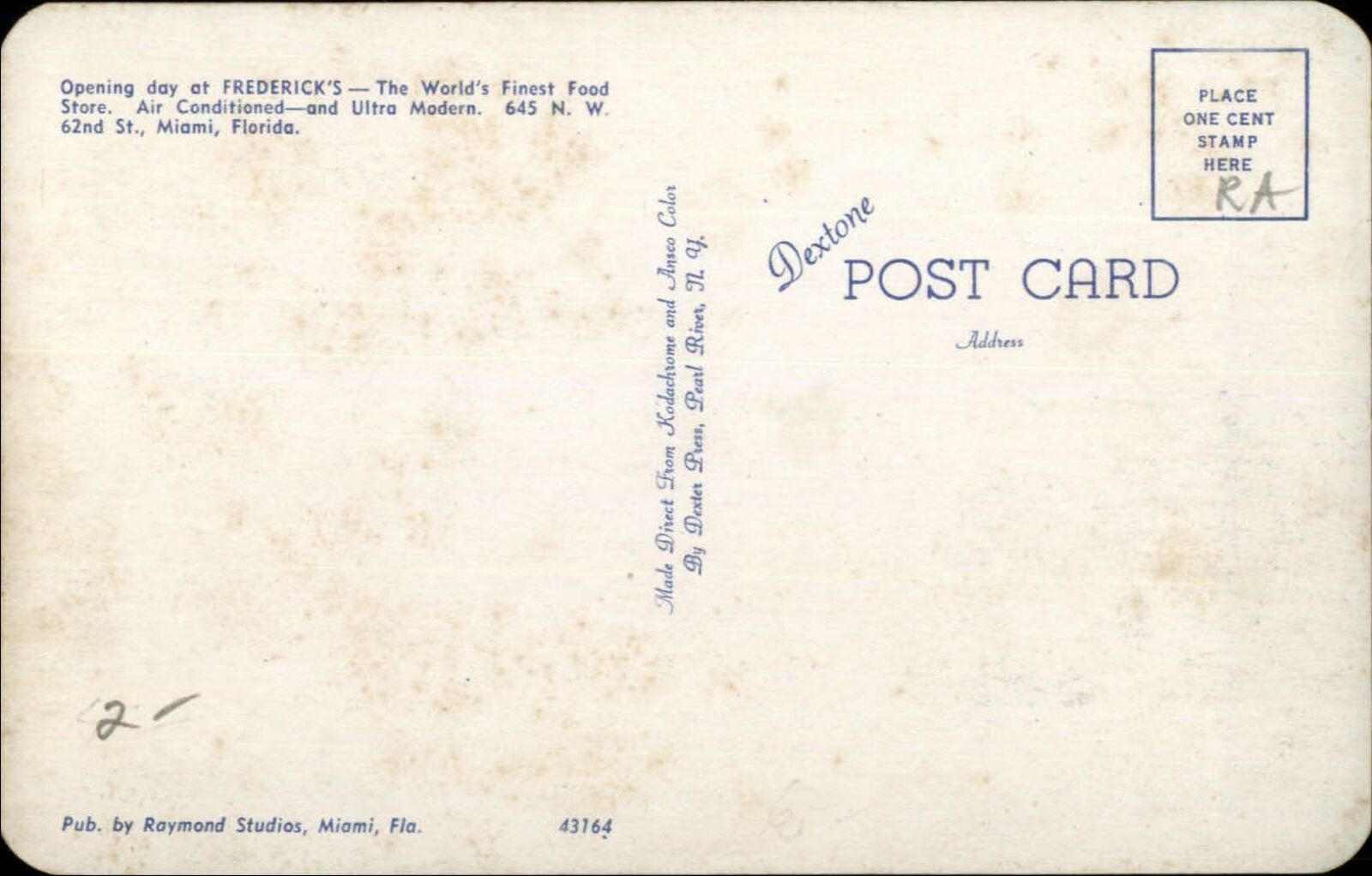 Miami FL Frederick's Grocery Store Grand Opening Postcard