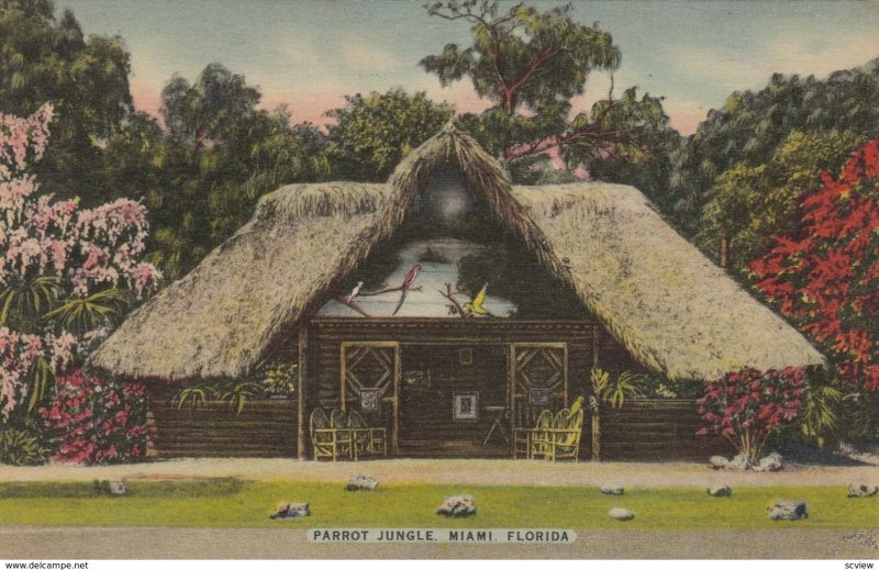 Miami , Florida , 30-40s ; Parrot Jungle :: Postcard , 3.5 by 5.5 , Linen