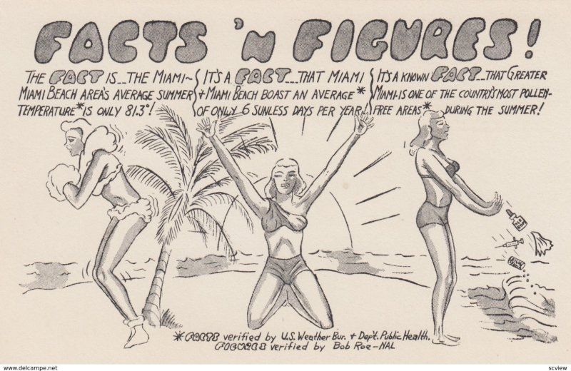 MIAMI , Florida , 50-60s "Facts & Figures" :: Postcard, 3.5" by 5.5", Chrome