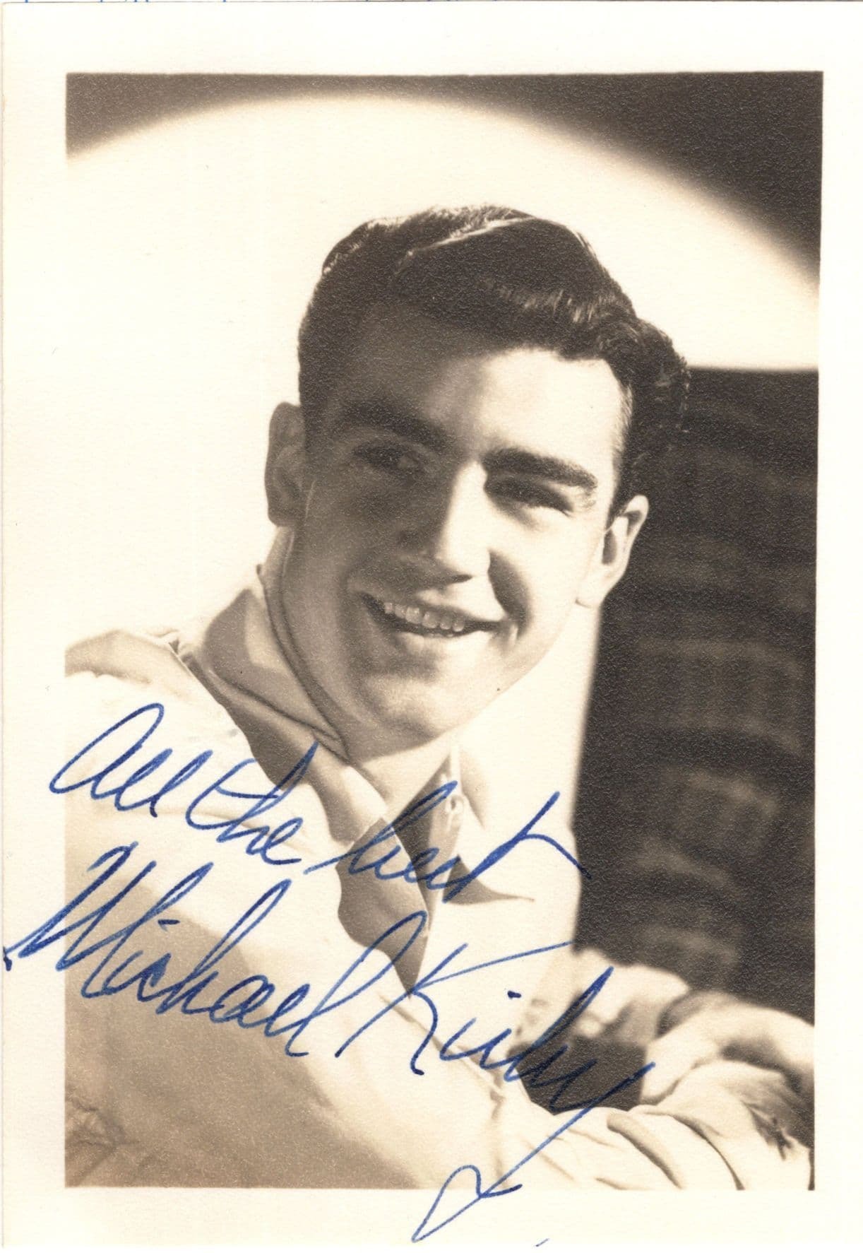 PFAS155 This is an original 5.5" x 3.5" antique hand signed card photo for Michael Kirby who has personally autographed the souvenir where his signature rests perfectly accompanying his portrait in mint condition and the autograph is undedicated too. You wont source better.