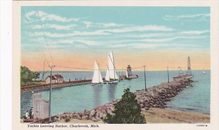 Michigan Charlevoix Yachts Leaving Harbor Curteich