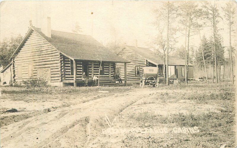 Michigan Grayling Log Cabin Resort 1919 Postcard roadside RPPC 22-6607