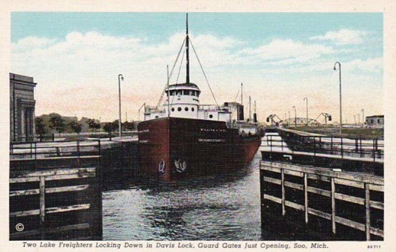 Michigan Soo Two Lake Freighters Locking Down In Davis Lock Curteich