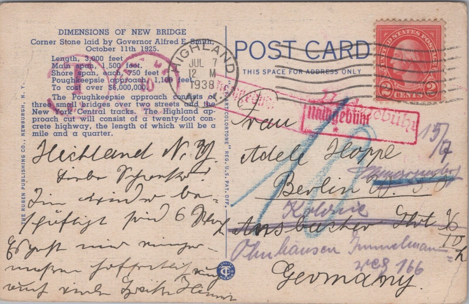 This vintage postcard features a stunning view of the Mid Hudson Traffic Bridge in Poughkeepsie, New York. The postcard is made of high-quality paper and has been carefully preserved over time. It is a single unit and is perfect for collectors of vintage postcards. The front of the card shows a beautiful image of the bridge, while the back has a space for a message and postage stamp. This original postcard is a great addition to any collection and is sure to evoke feelings of nostalgia for the era of linen postcards.Look close at the pictures for the quality of the postcards and use the Hip zoom to examine the front and back. Lines are from the scanner and are not on the postcardPostcard Size: Standard 3 1/2 by 5 1/2 (9x14CM) (Unless Otherwise Noted Above)For more rare postcard check out GenerationpostcardsPlease pay via paypal within 5 days. Thank you