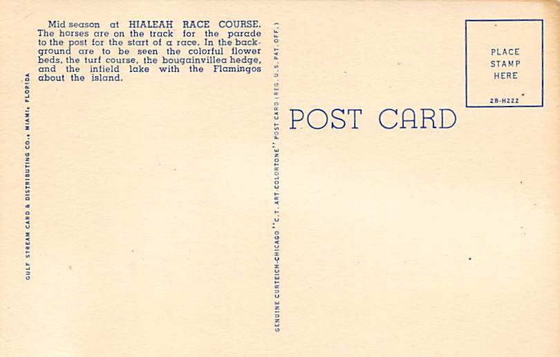 Mid-Season at Hialeah Race Course Hialeah FL Postcard