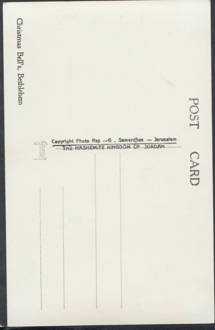 Mo's Postcards Postcard Description: Middle East Postcard - Christmas Bell's, Bethlehem Genealogy Information: Defect(s): Postage & Payment: For U.K residents the quoted P & P fee is for any number of postcards purchased at one time. Happy to quote for non UK residents. For multiple purchases please wait for an invoice