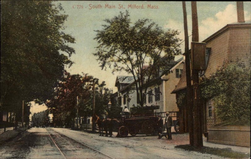 Milford MA South Main St. Fire Engine c1910 Postcard