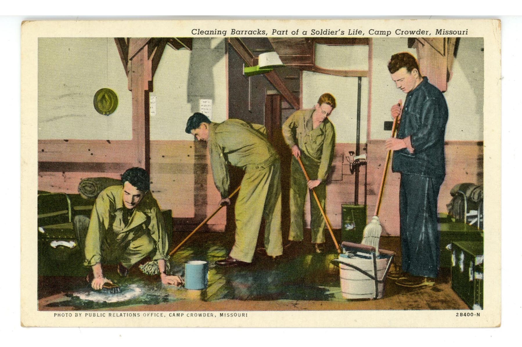 Military - Camp Crowder, MO. Cleaning the Barracks
