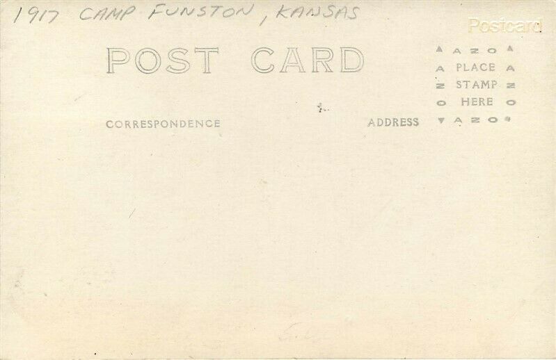 Military, Camp Funston? Kansas, Barracks Early Real Photo Postcard Photographer: Postmark: None, AZO Stamp Box 1910-30 Image: Sharp and clear Corners: Light wear Faults/Other: