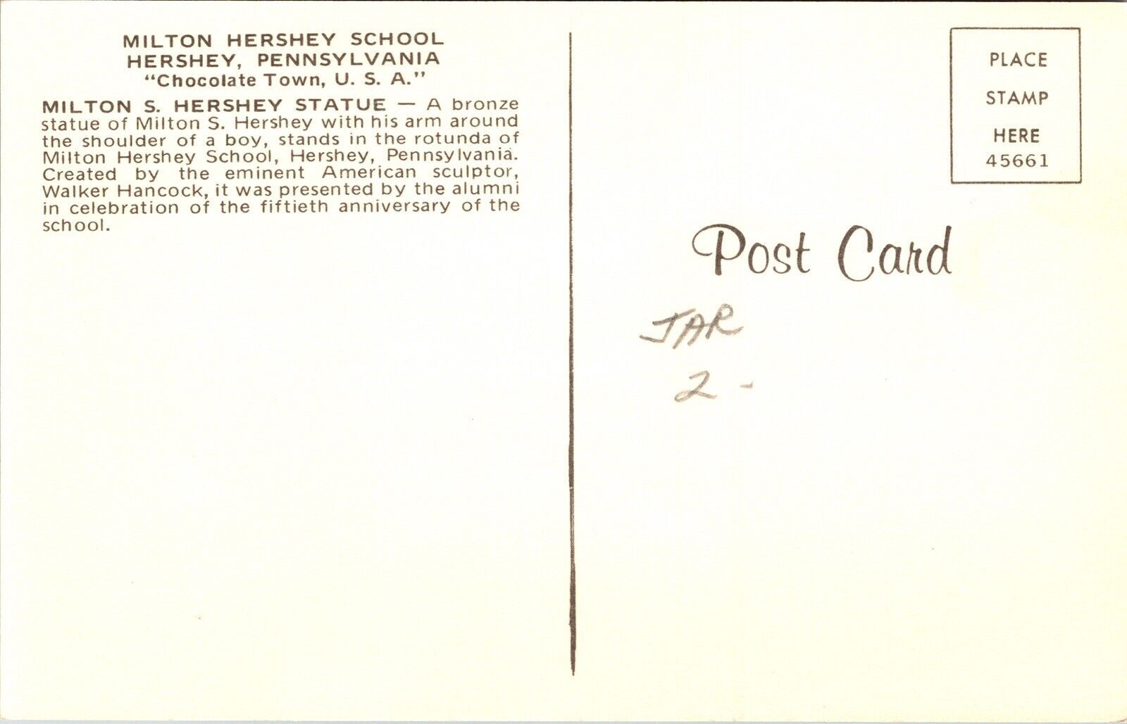 Milton hershey school & historic statue hershey pennsylvania chrome postcard You will receive the exact postcard in the picture. We use a high quality scanner to capture pictures of the front and back for every pos ... Read More