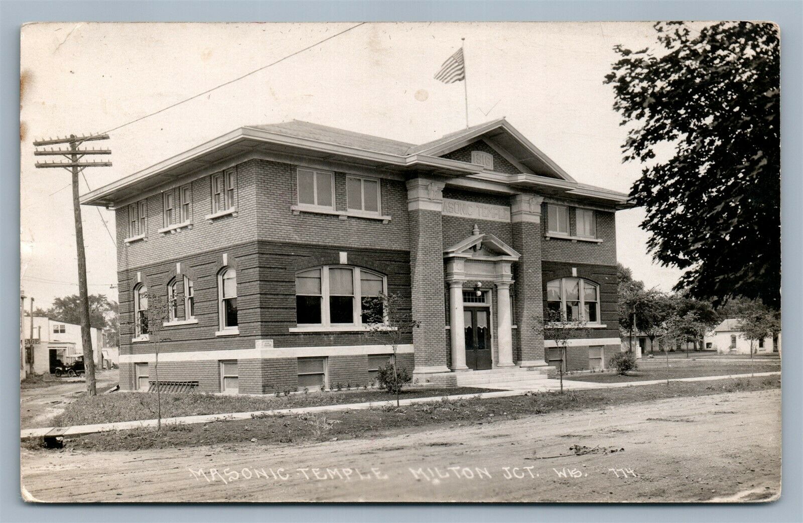 MILTON JUNCTION WI MASONIC TEMPLE ANTIQUE REAL PHOTO POSTCARD RPPC