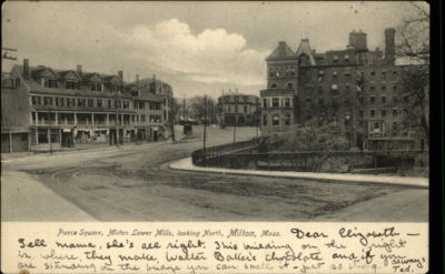 MILTON MA Lower Mills Street Scene c1905 Postcard