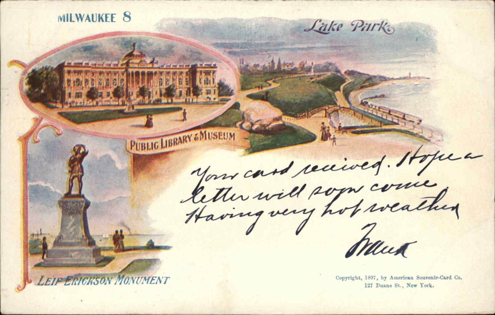 Milwaukee 8 WI Multi-view Patriographic c1905 Postcard Private Mailing Card