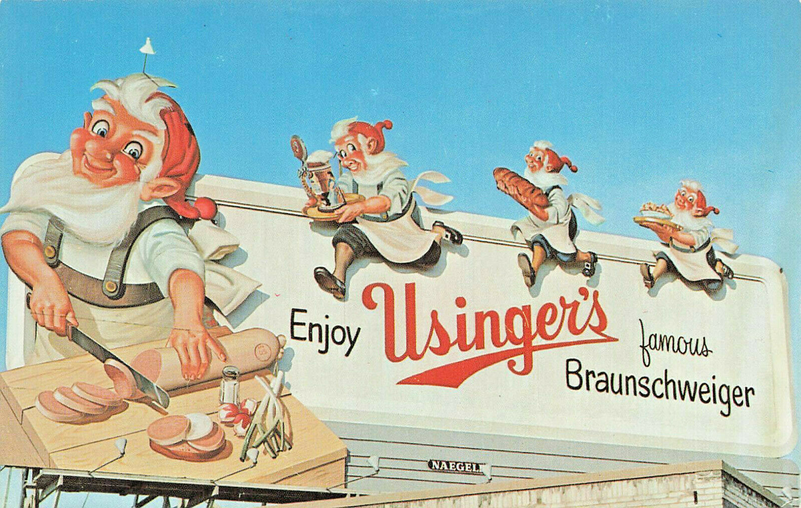 Milwaukee wi the usinger's elf trademark billboard, postcard.