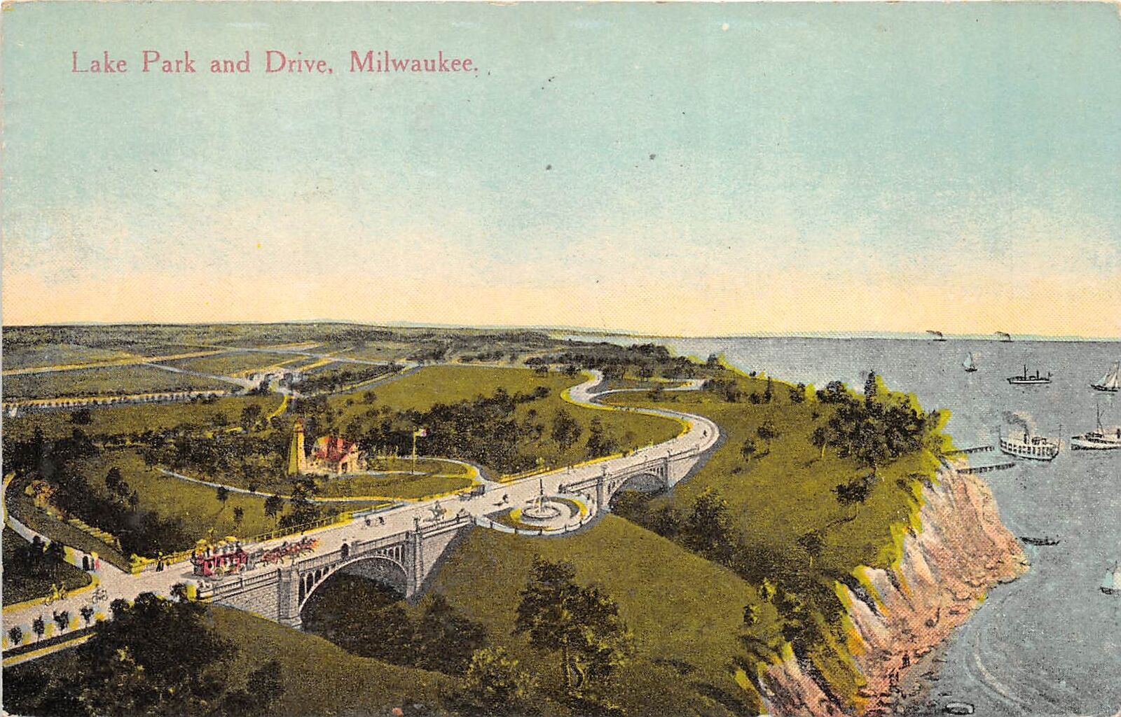 Milwaukee Wisconsin 1913 Postcard Lake Park & Drive