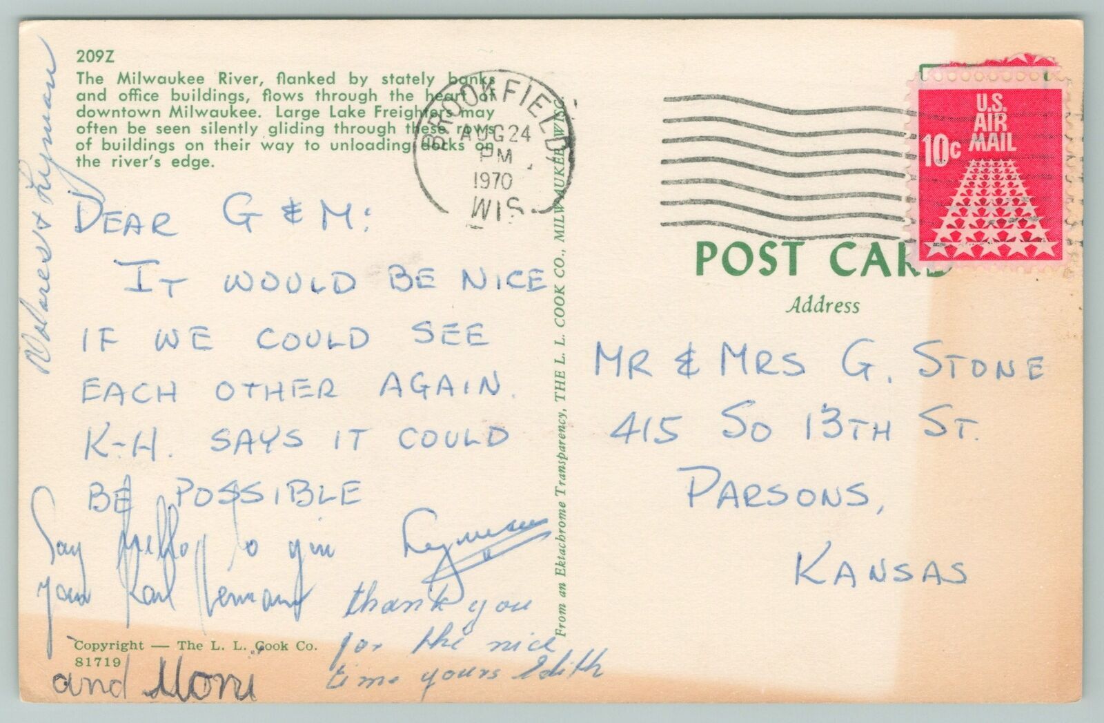 Milwaukee Wisconsin~Milwaukee River & Skyline View~Vintage Postcard