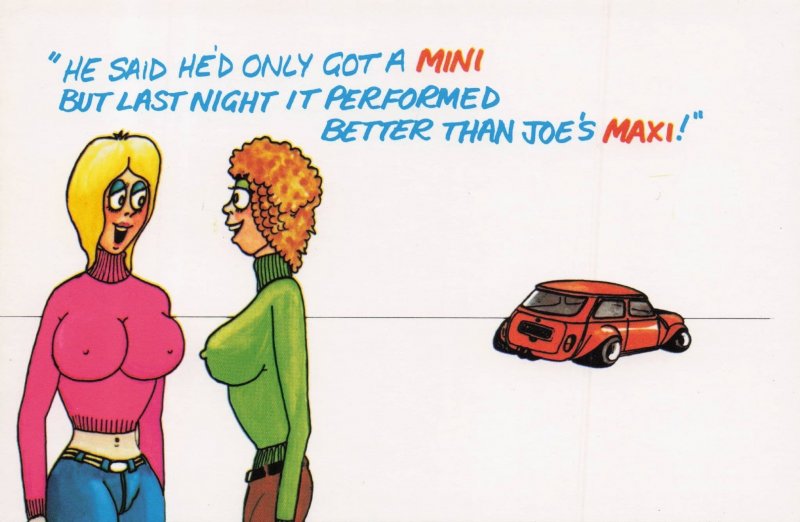 Mini+D2:D80 VS Maxi Old Classic Car Lady Passengers Comic 1970s Postcard