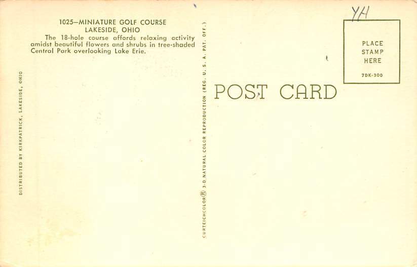Miniature Golf Course Lakeside, Ohio OH Postcard - View back of card